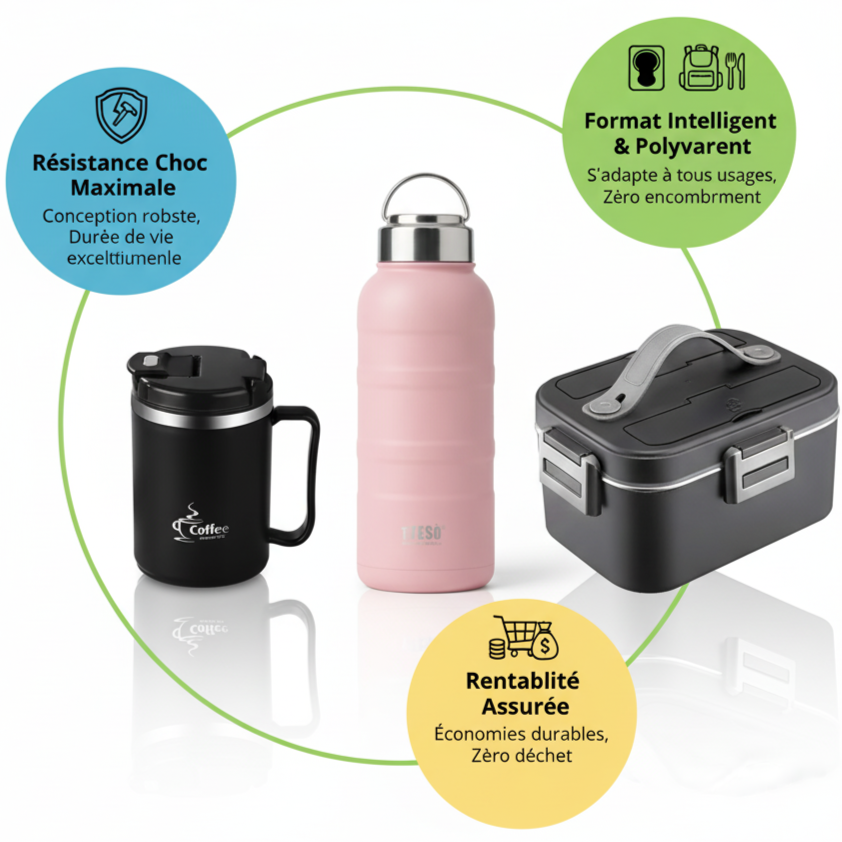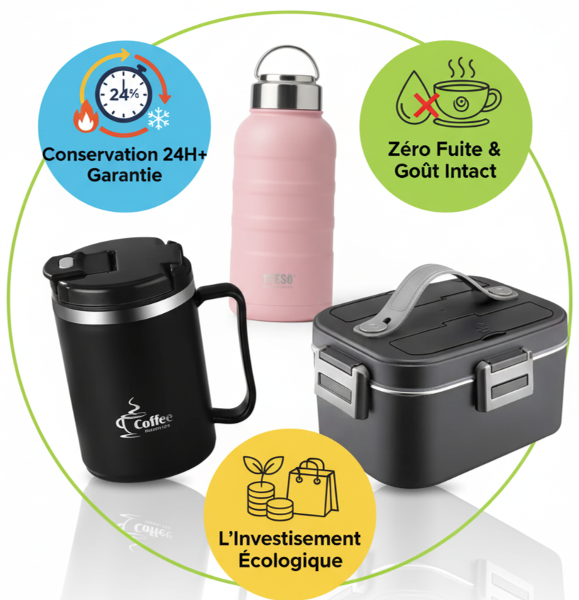 • Zéro Fuite & Goût Intact : Joints hermétiques testés 100% fiables. L'acier alimentaire n'altère jamais la saveur.